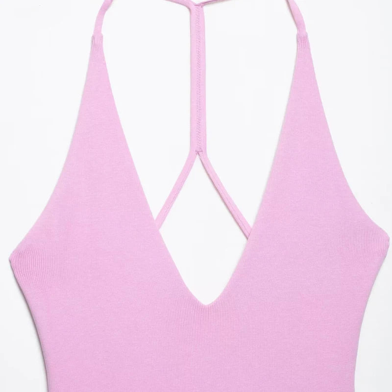 Women's Dresses 2025 Halter Pink Mini Dresses Chic v Neck Layer Ruffles Hem Dress A Line Vestido Summer Ladies Street Party Wear