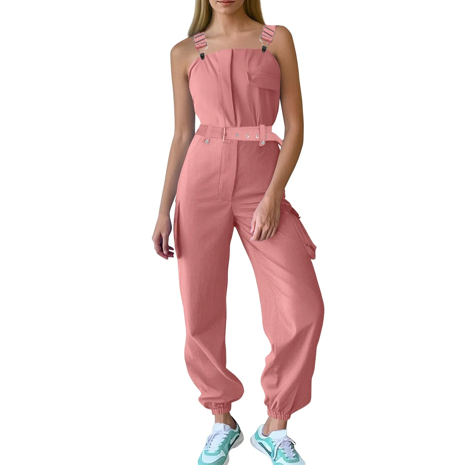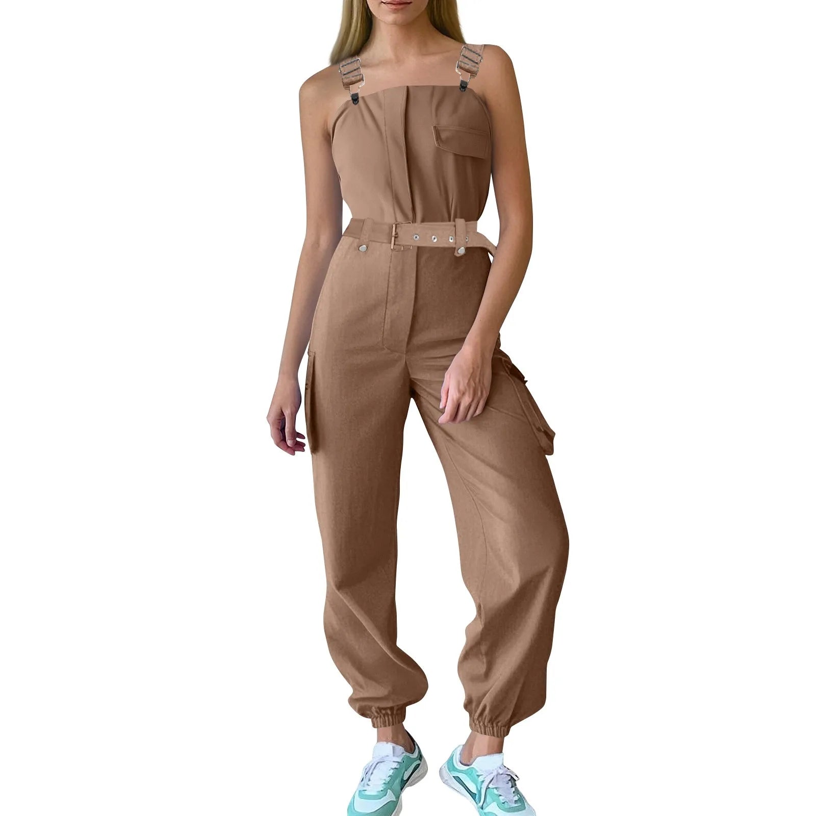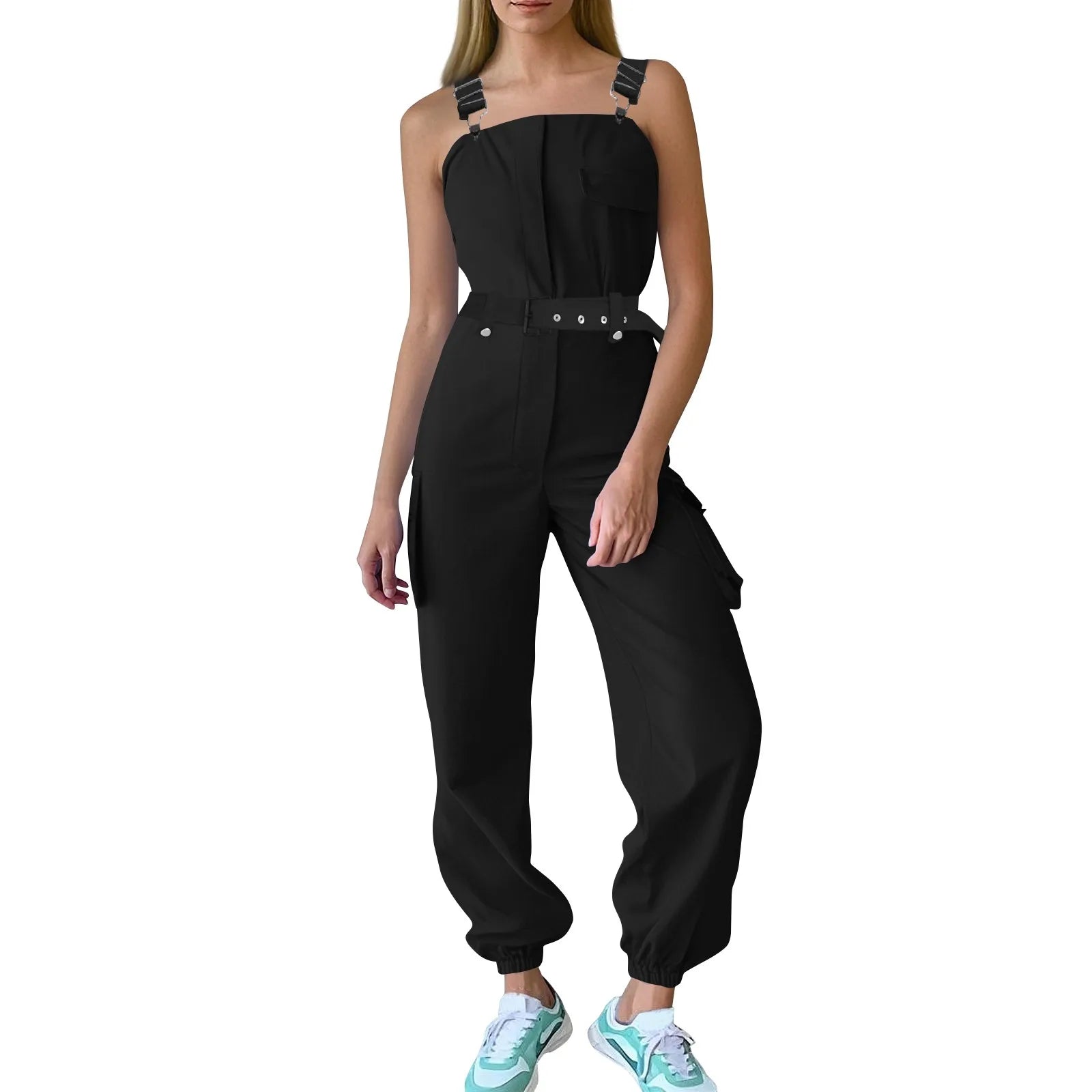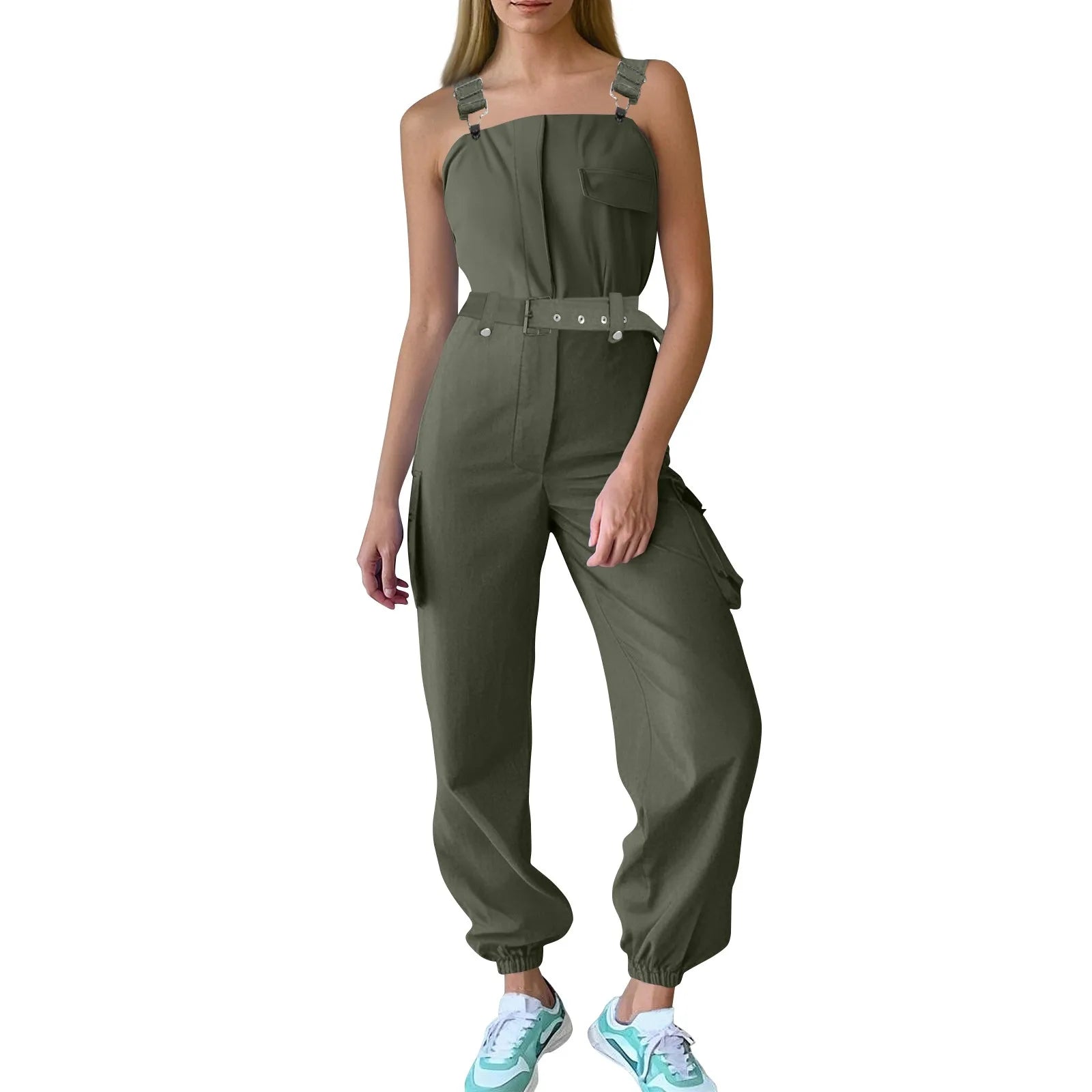 Lady's Fashion Clasp Pocket Cargo Romper Jumpsuits, Casual Jumpsuit Summer