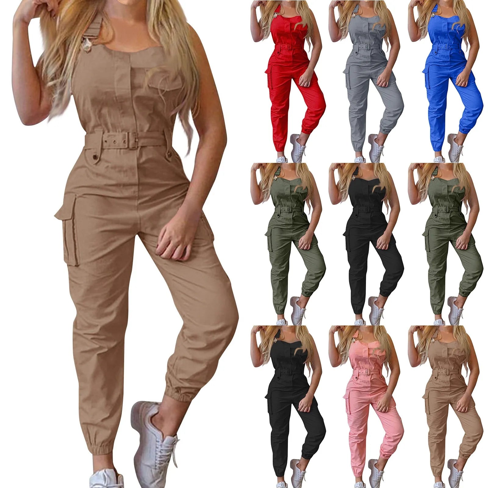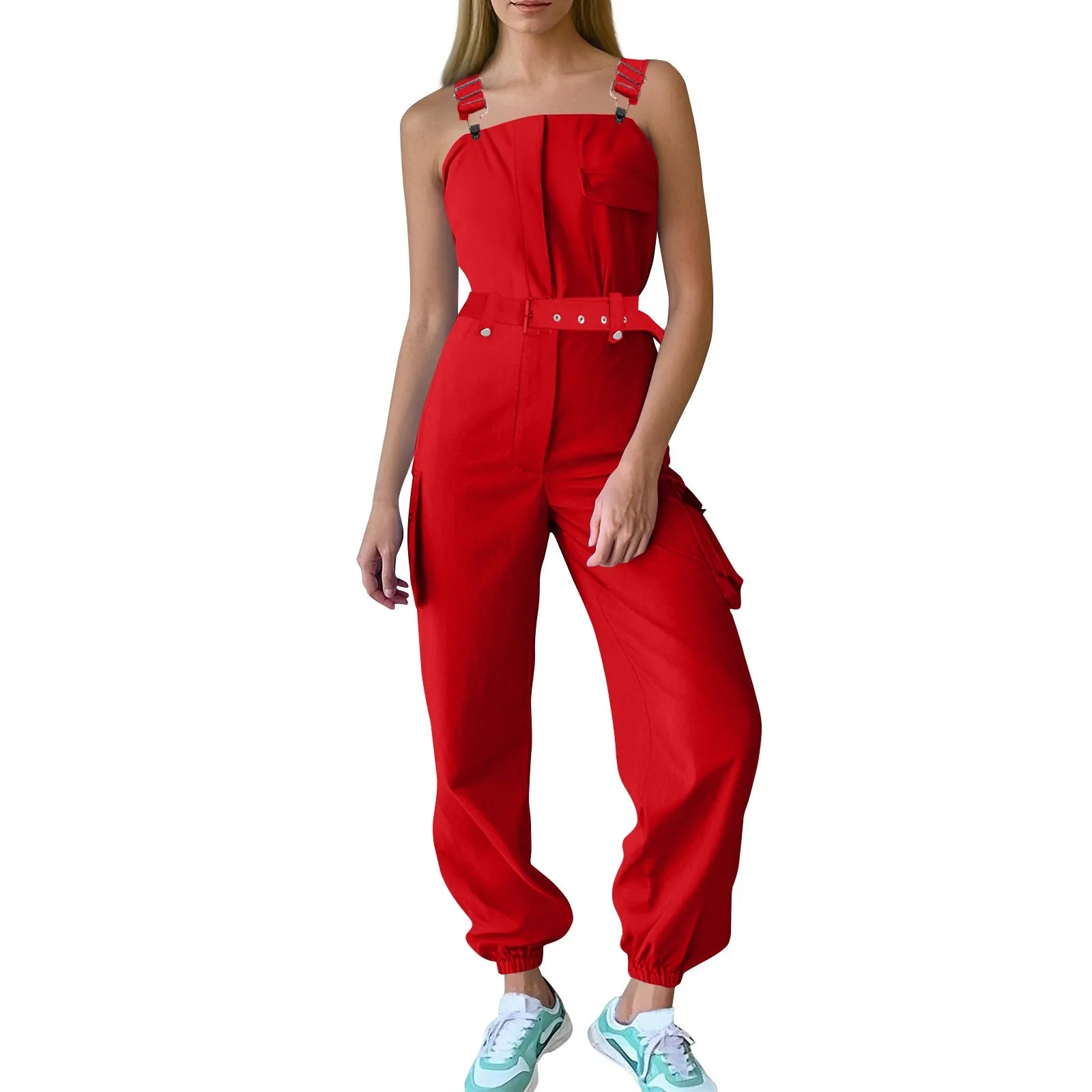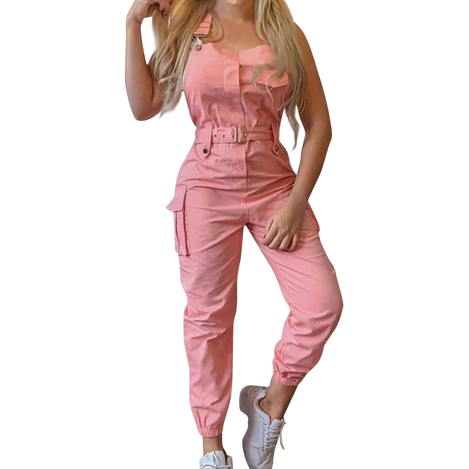 Lady's Fashion Clasp Pocket Cargo Romper Jumpsuits, Casual Jumpsuit Summer