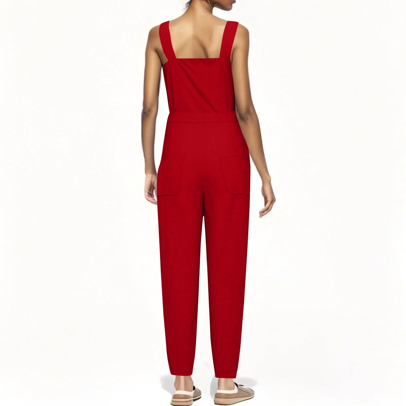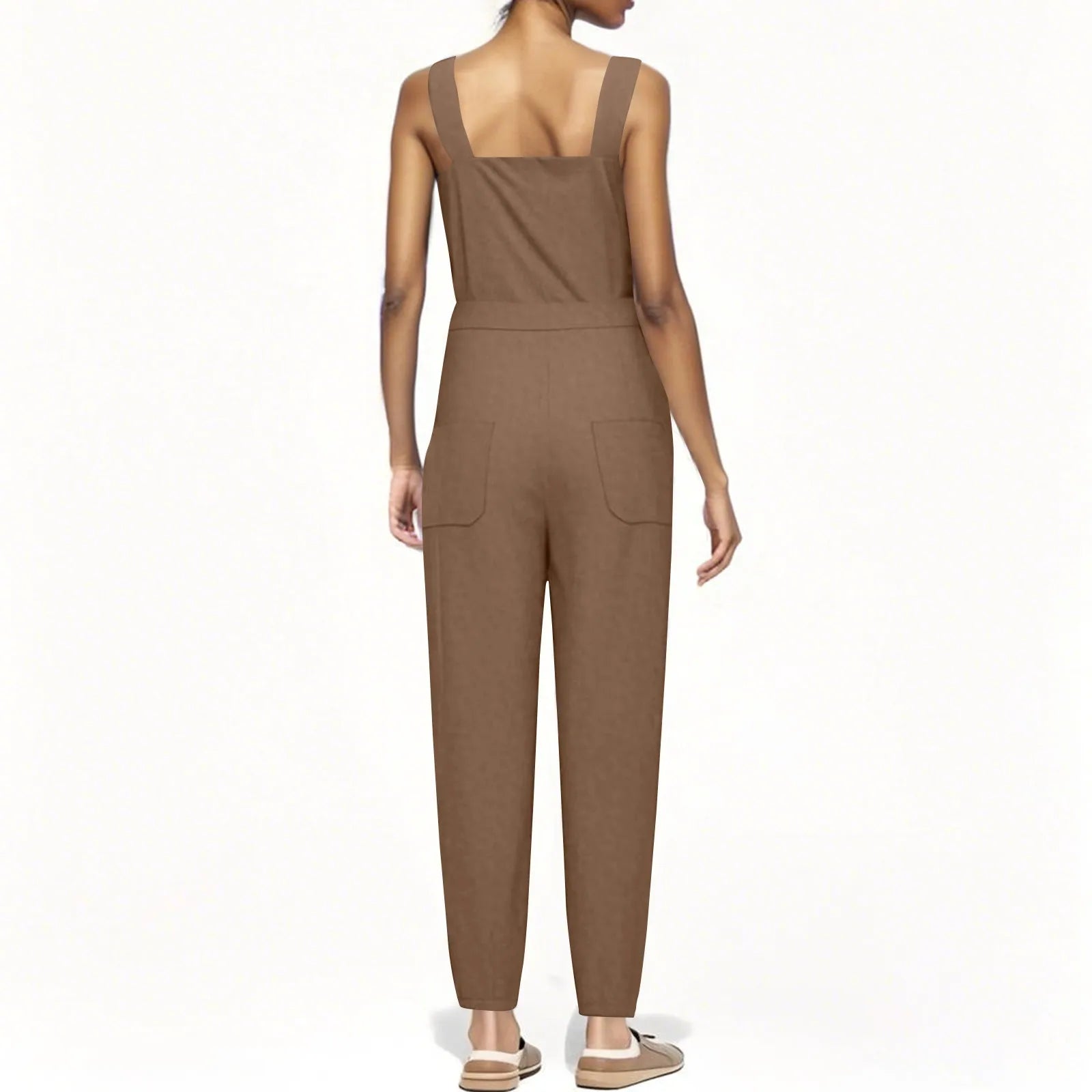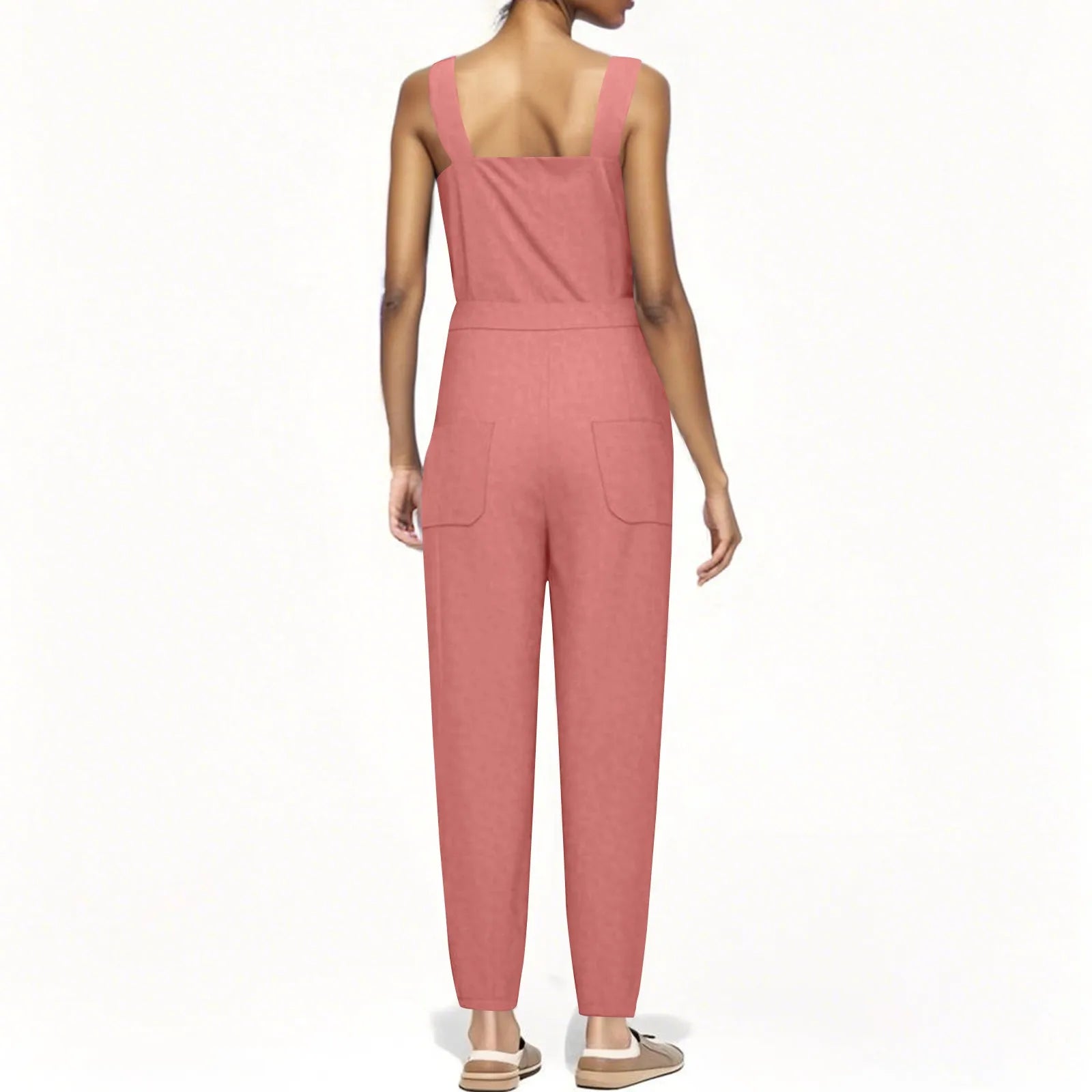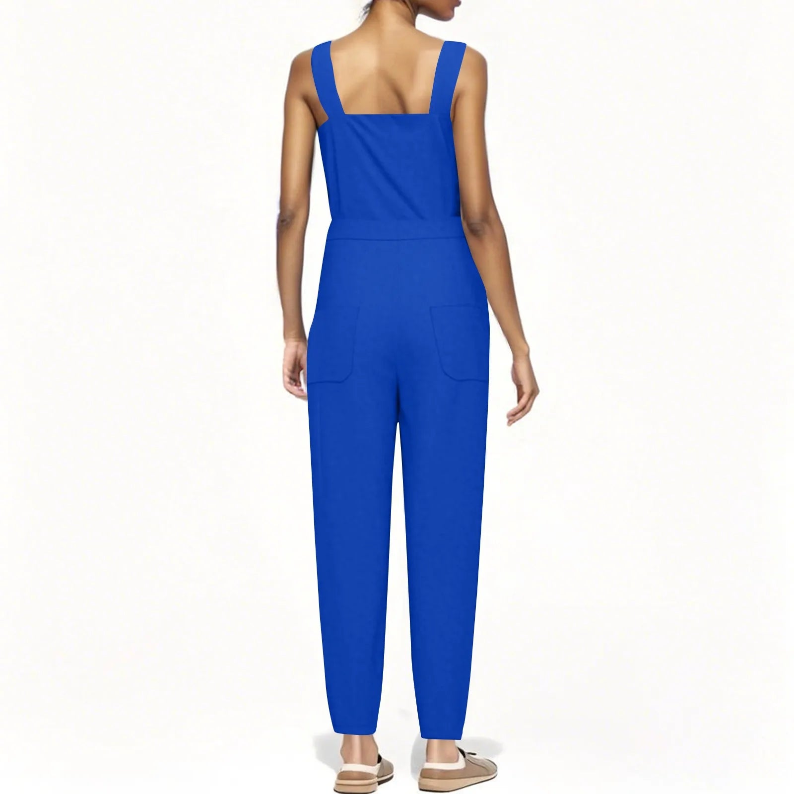 Lady's Fashion Clasp Pocket Cargo Romper Jumpsuits, Casual Jumpsuit Summer