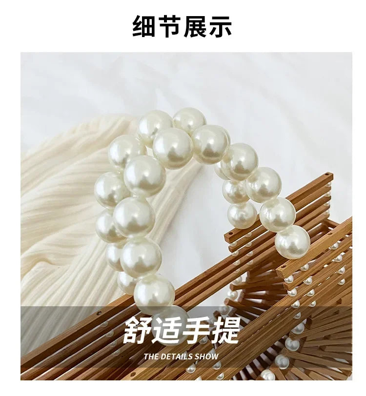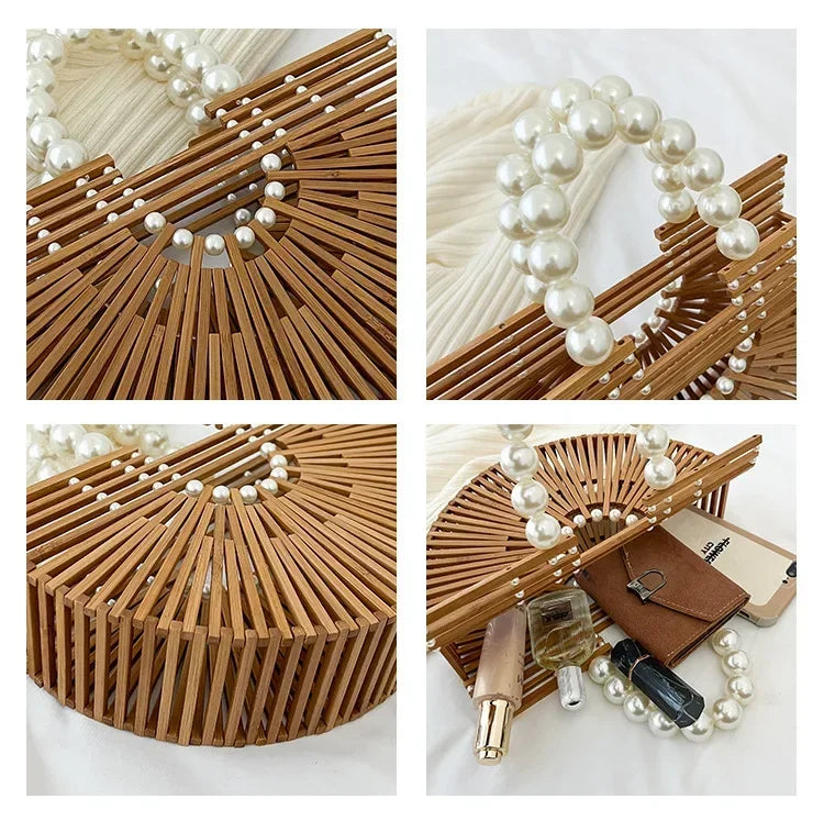 Women's Hand - Woven Bamboo Bag | Bamboo Woven Basket Style, Beach Vacation Essential, Handheld Bucket Design
