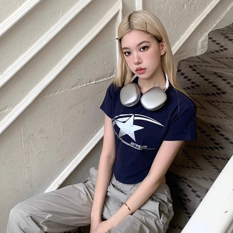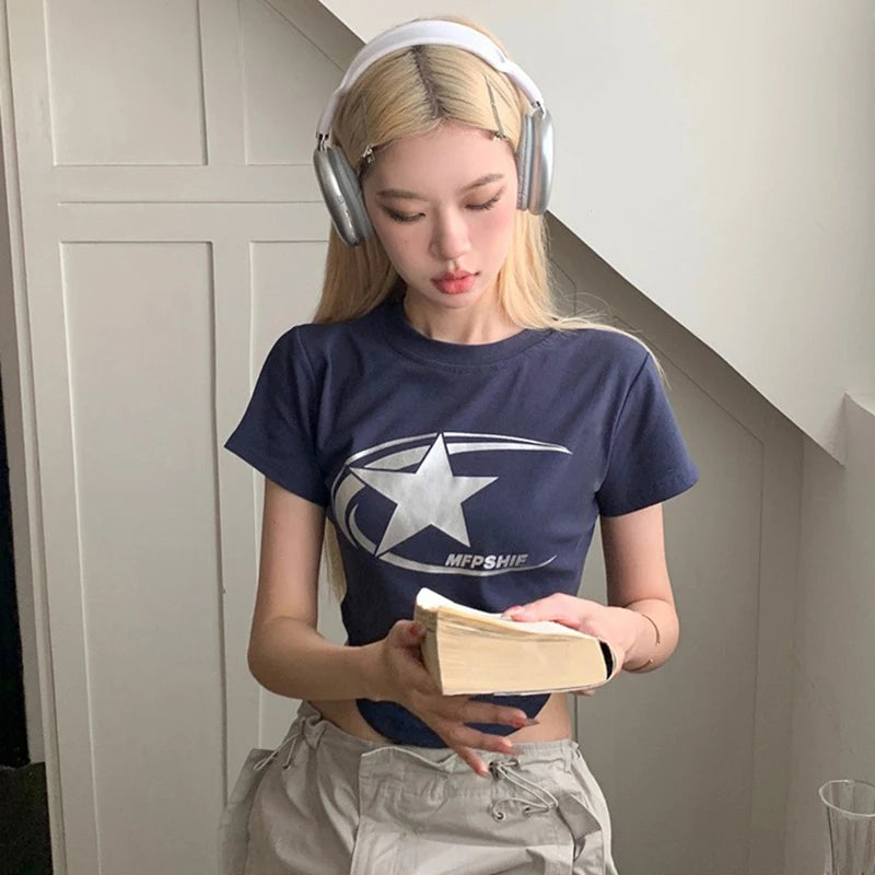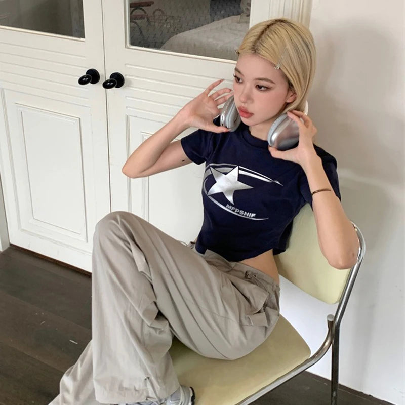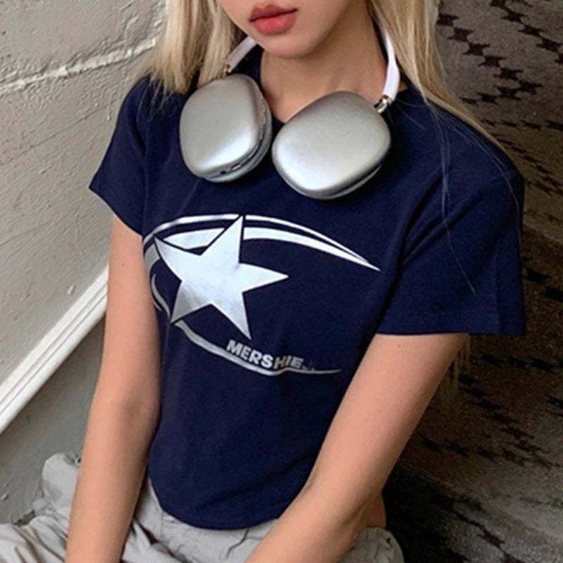 Women's Minimalist Star Print Y2K Gothic Harajuku Casual Pullover T-Shirt Retro Streetwear Top for Spring Summer