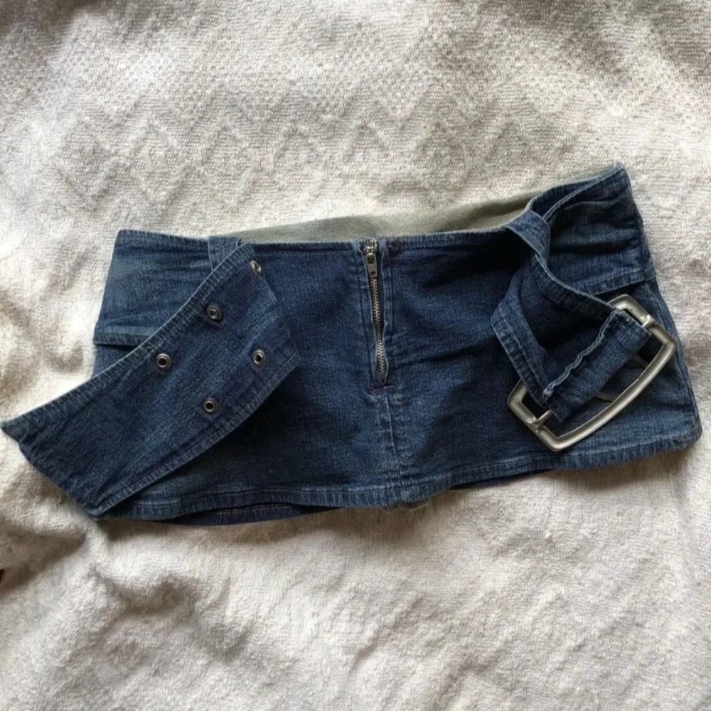 Y2K New Low Waist Denim Micro Mini Skirt Harajuku Vintage Navy Blue Jean Short Skirt Womens Clothes Gothic Sexy Slim Short Skirt