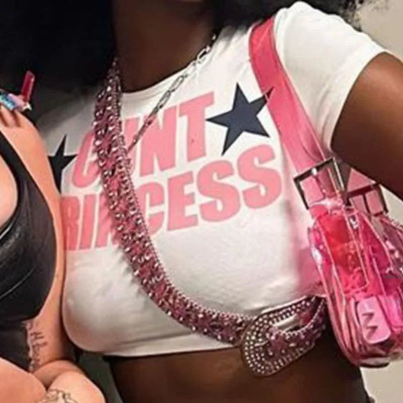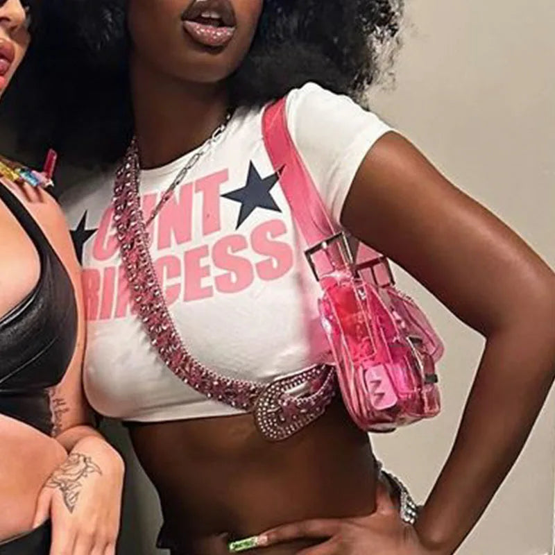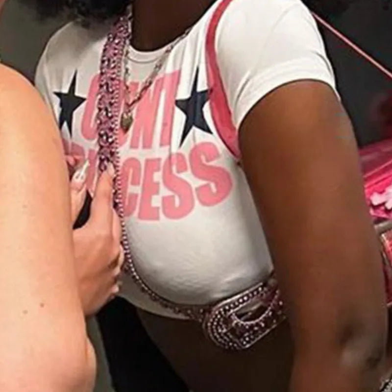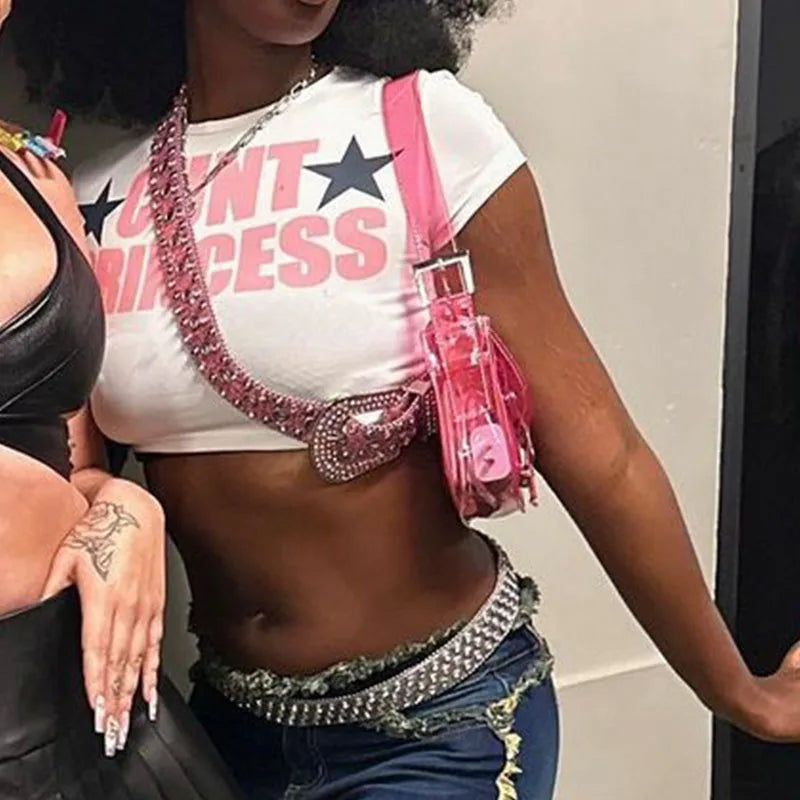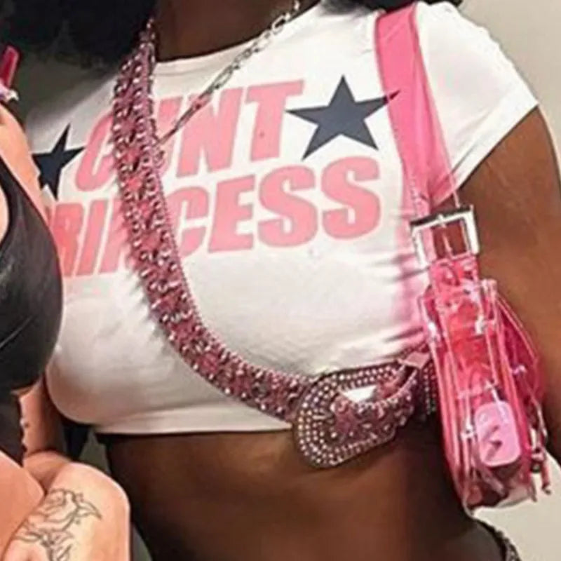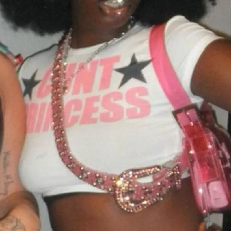 Y2K Style Woman Clothing Tops Women Tshirt Letter Print Y2k Top Gothic Short Sleeve Crop Sexy Tops 2023 Woman New Top Short