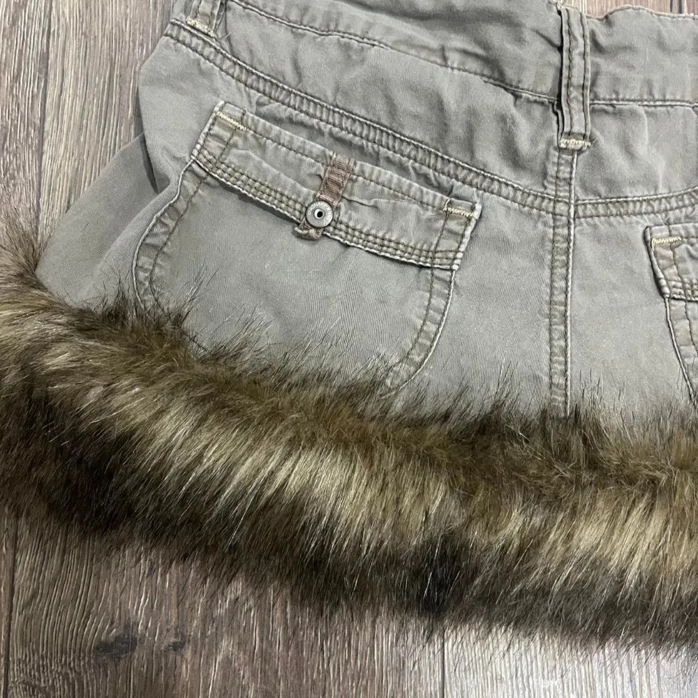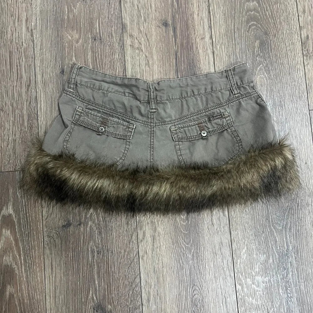 Y2K Vintage Khaki Raw Edge Cargo Skirt Harajuku Hottie Low Waist Mini Skirt Gothic Casual Cross Graphic Embroidery Short Skirt