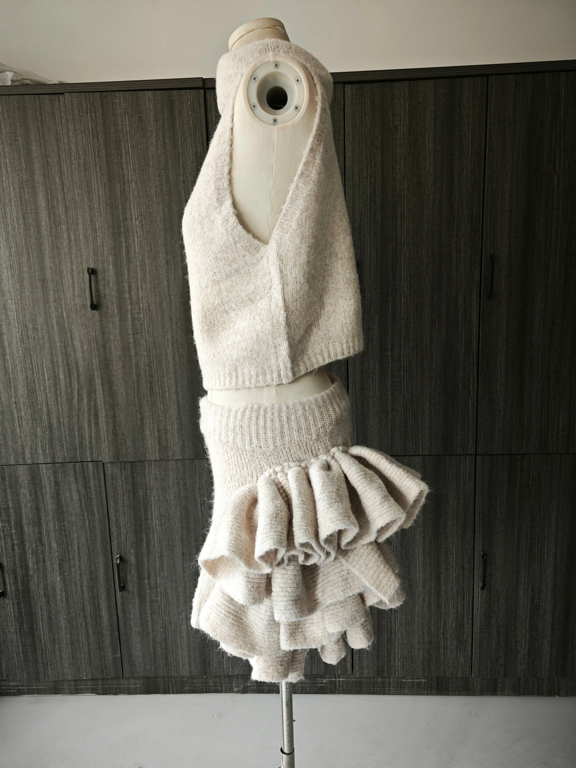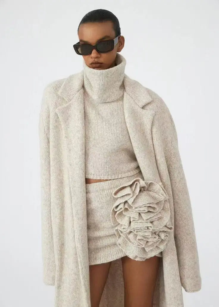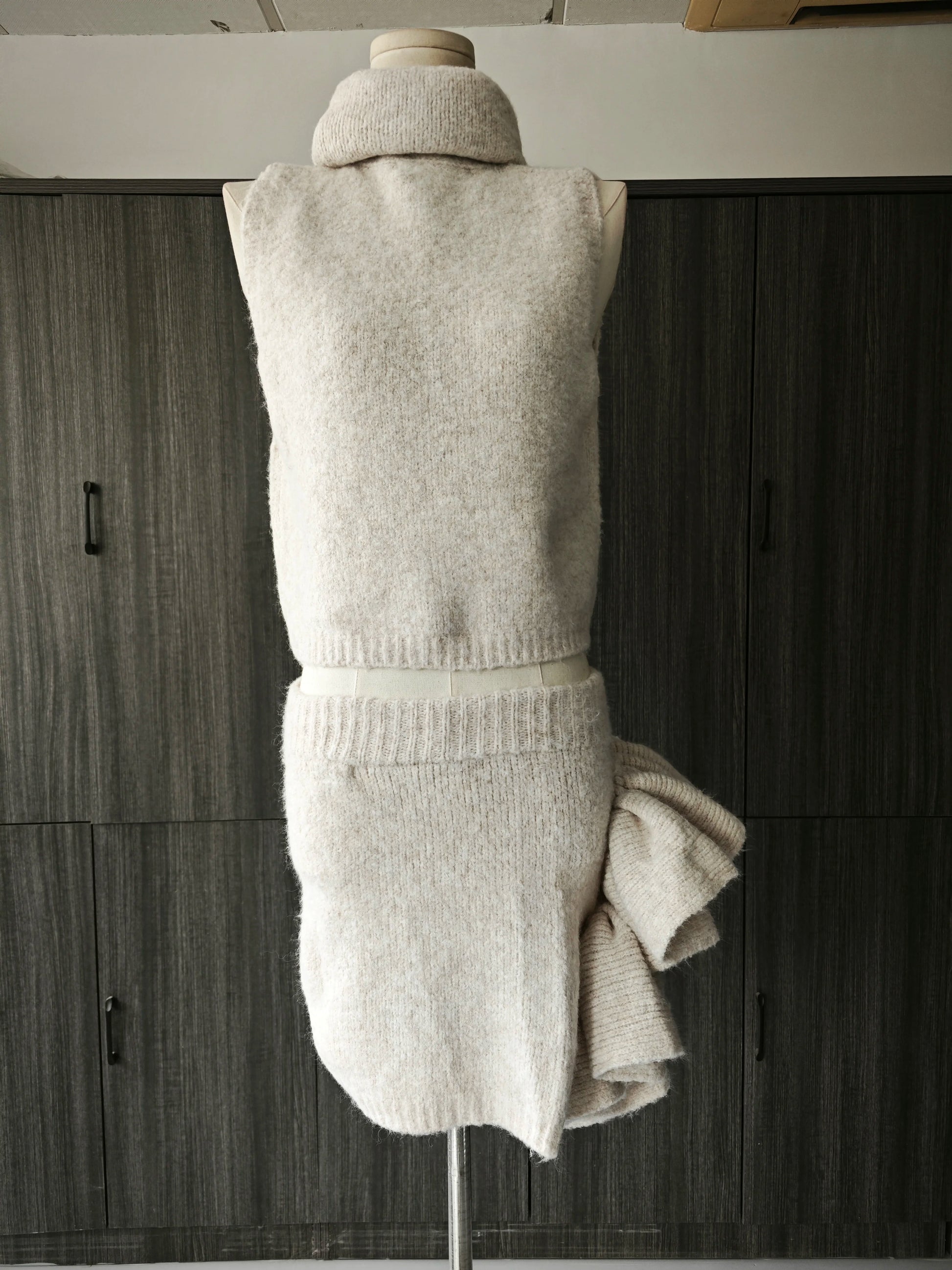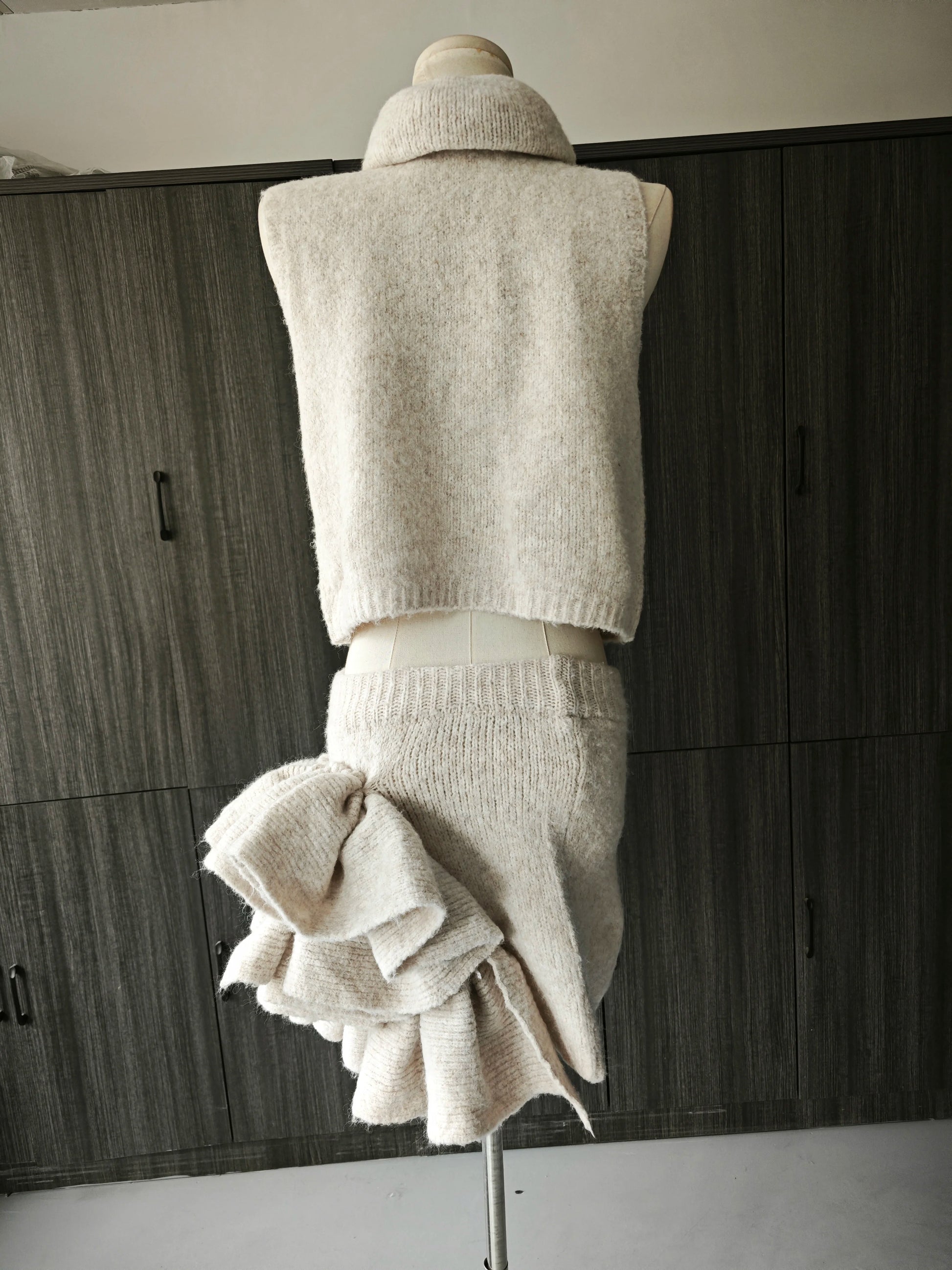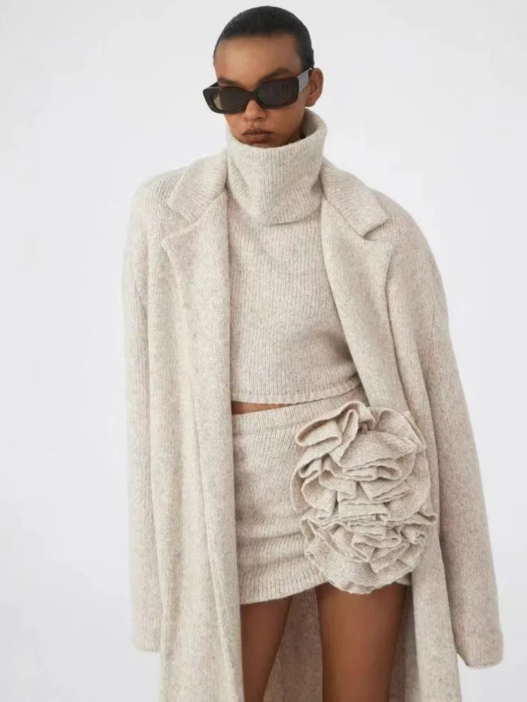 ZMEENNA Stand Collar Sleeveless Swerater Long Sleeve Coats Patchwork 3D Flower Skirt 3 Pieces Sets For Women 2025 Spring ZM545